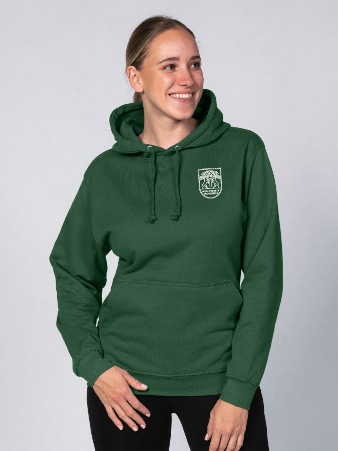 Material: 80% Baumwolle, 20% Polyester Materialstärke: 280 g/m² Schnitt: Regular (normal geschnitten) Sonstiges: Details mit Doppelnähten, Kapuze aus Doppelgewebe, Kängurutasche, Kordeln in gleicher Farbe, Ripp-Bündchen und -SaumDer perfekte Hoodie für einen bequemen und entspannten Look. Der Kapuzenpullover für Frauen überzeugt nicht nur durch den bequemen Unisex Fit, sondern auch durch hohe Qualität.